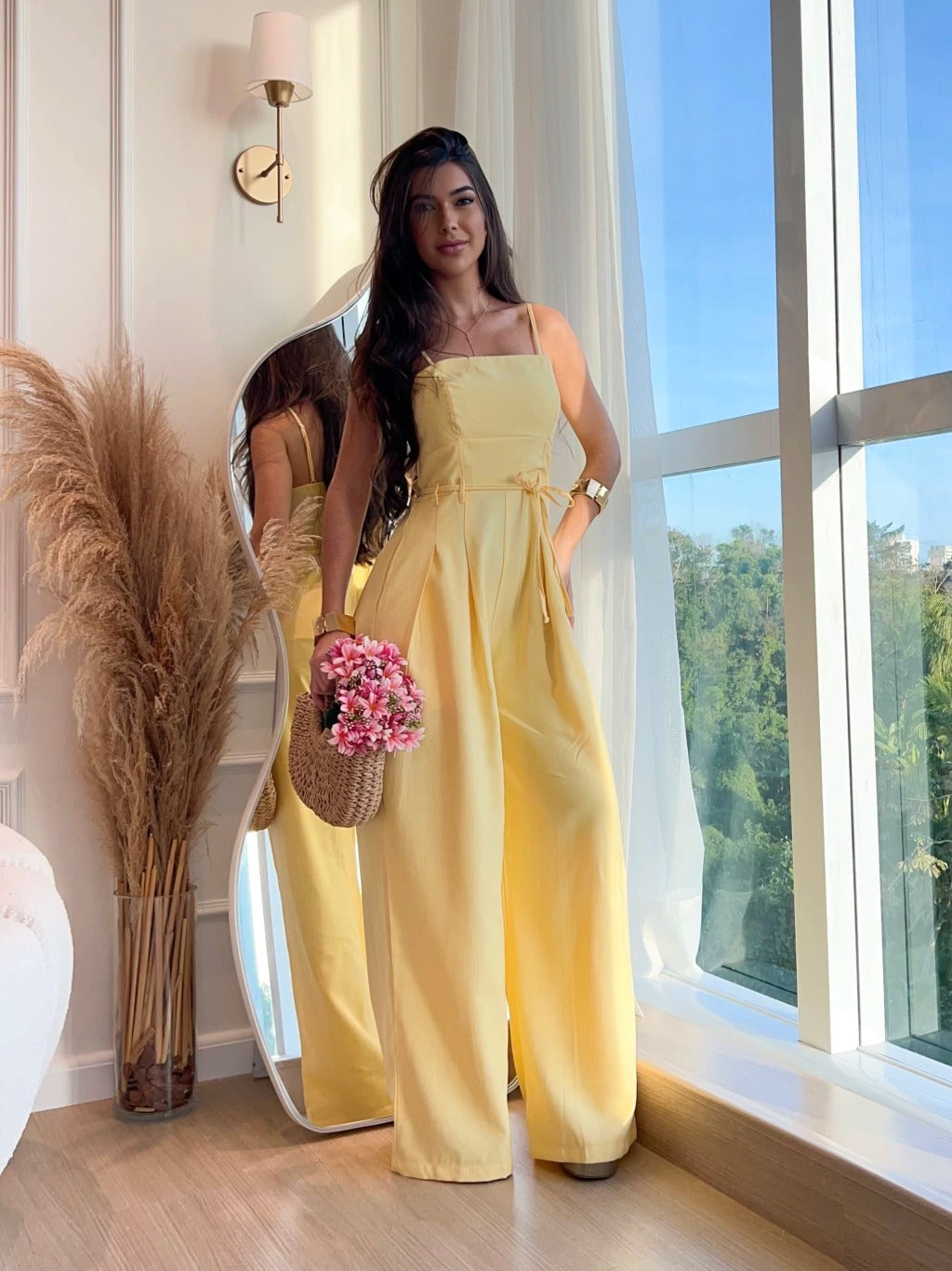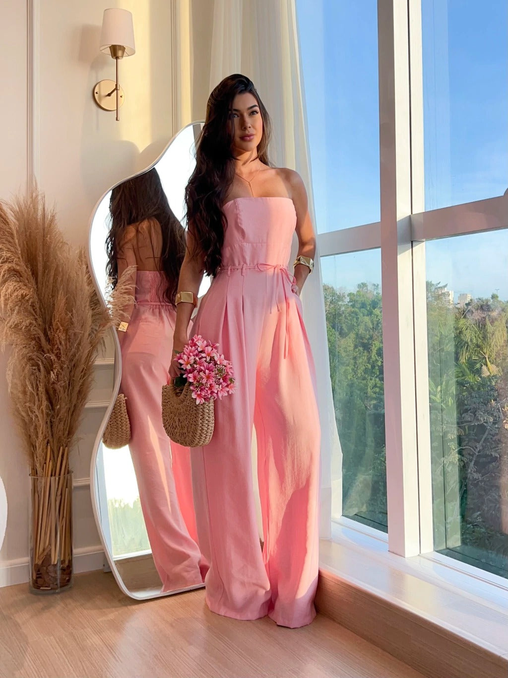 Macacão em tecido leve e fluido, com modelagem tomara que caia e calça ampla de caimento sofisticado. Possui amarração na cintura que valoriza a silhueta e garante um toque de elegância. Ideal para eventos casuais e produções que pedem conforto aliado ao charme.